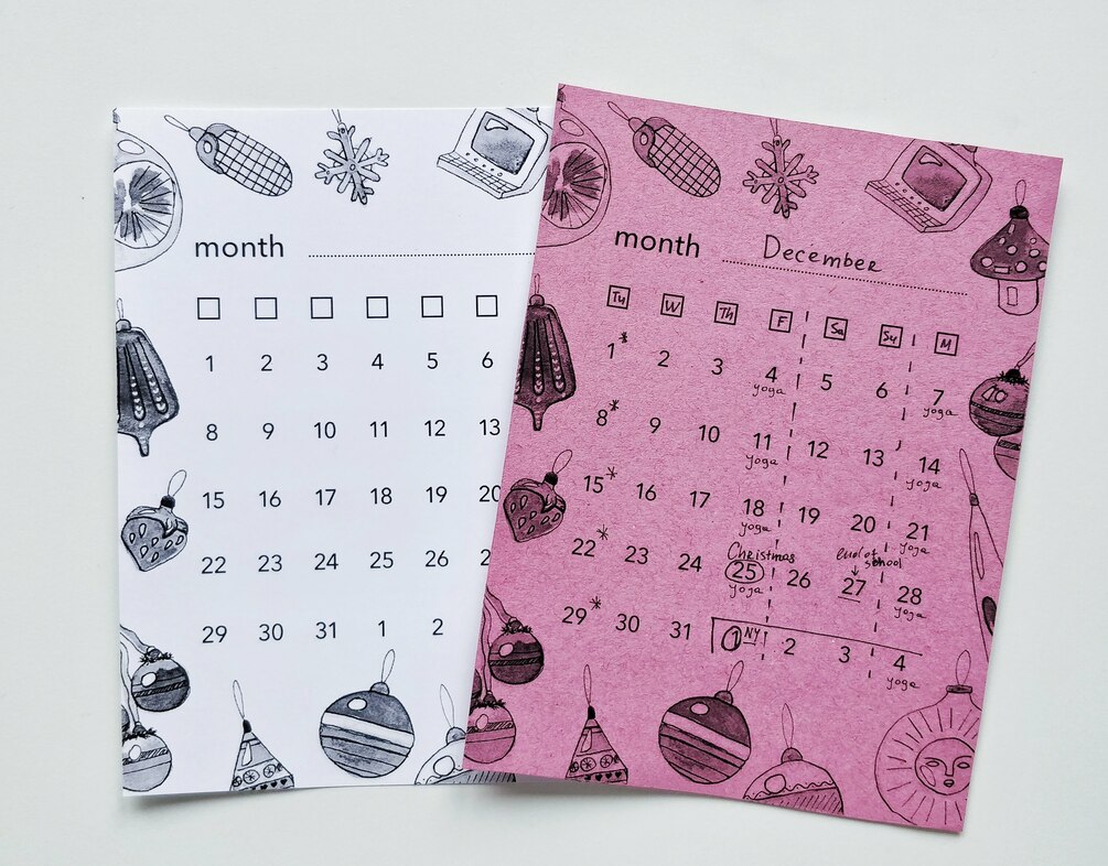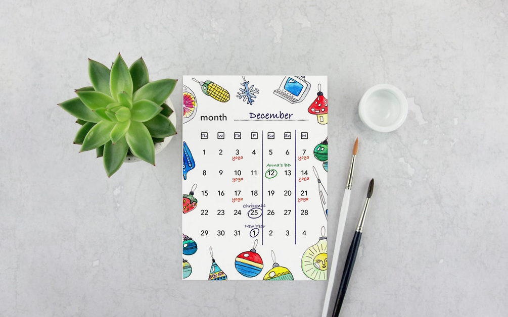 The template is perfect for planning a month ahead and outlining key dates to look forward to. I picked some quirky nostalgic Christmas tree ornaments from my childhood to make it pop. Enjoy!